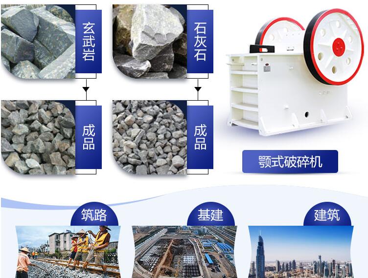 顎式破碎機主要用于對各種礦石與大塊物料的中等粒度破碎,被廣泛運用于礦山、冶煉、建材、公路、鐵路、水利和化工等行業(yè)。可對石英石、青石、河卵石、鵝卵石、石灰石、鐵礦石等石料進行定制破碎。